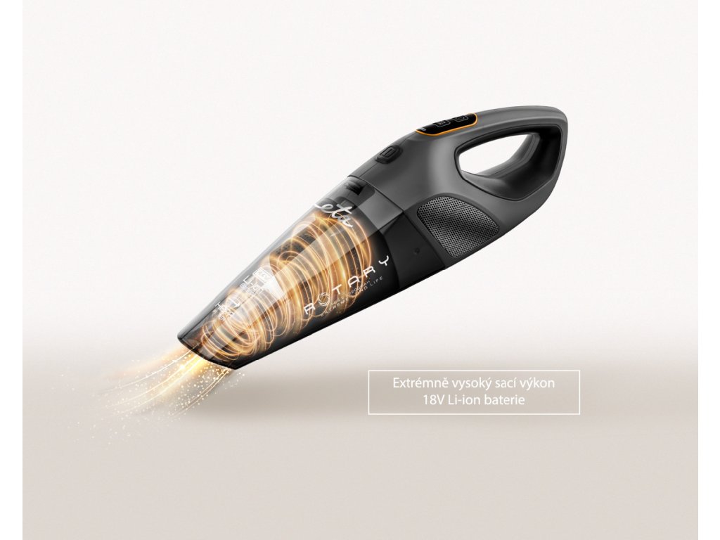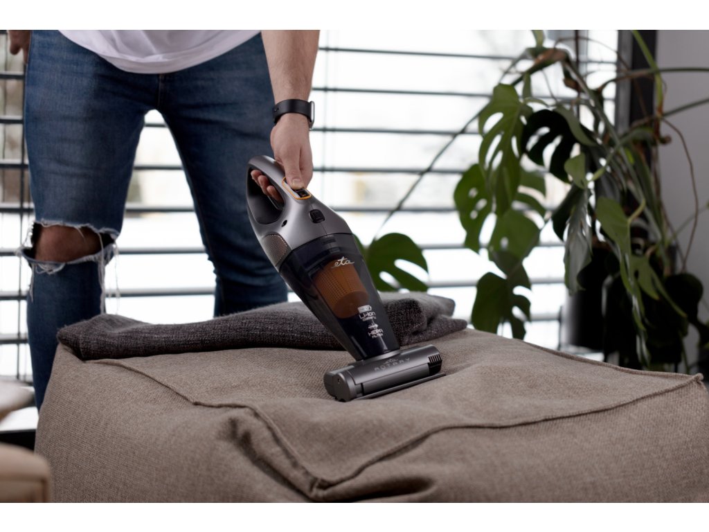 Ruční vysavač nové generace ETA Rotary vás nadchne silným sacím výkonem i elektrickým rotačním kartáčem, který zajistí ještě efektivnější sběr a vyčesání nečistot. O jejich filtraci se následně postará účinný HEPA filtr.