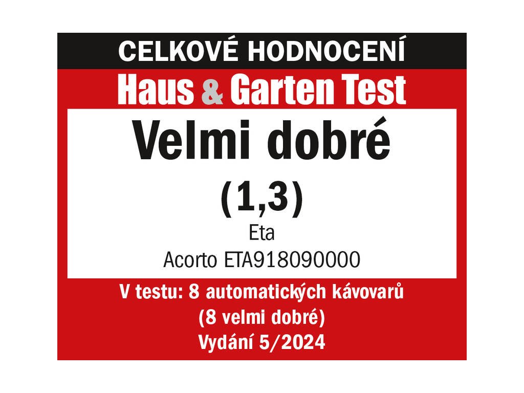 Kávovar ETA Acorto boduje i v zahraničí! V hodnocení prestižního německého časopisu Haus & Garten získal výjimečnou známku Velmi dobrý 1,3.