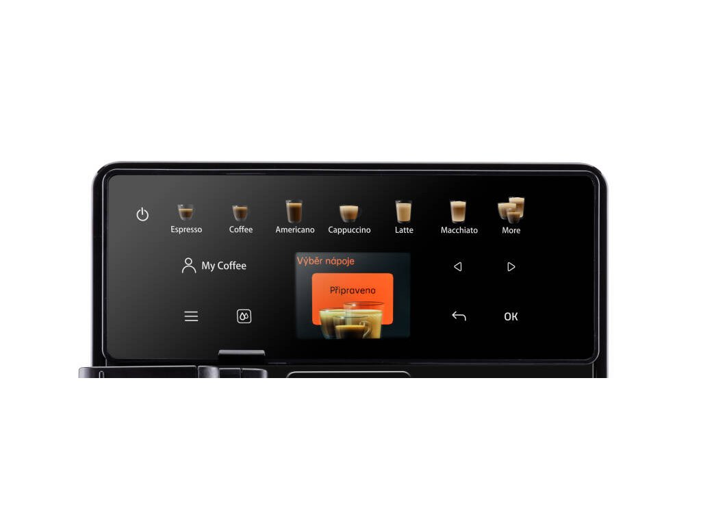 - Dotykový ovládací panel s displejem usnadní nastavení a výběr kávy
