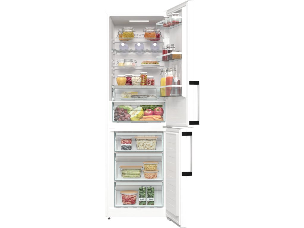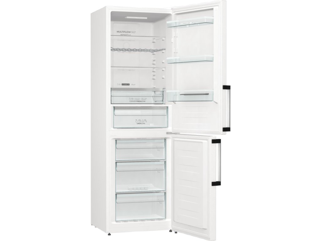Kombinovaná chladnička Gorenje NRK619CA2W5 nabízí jeden z nejlepších chladicích systémů na trhu instalovaný v mrazicím oddílu. Zabraňuje hromadění ledu a námrazy, aby se udržovala nízká spotřeba energie, zatímco v chladničce udržuje ideální mikroklima pro čerstvé potraviny. Aby nedošlo k vysychání vašich uskladněných potravin, postará se o ně cirkulace ionizovaného vzduchu.