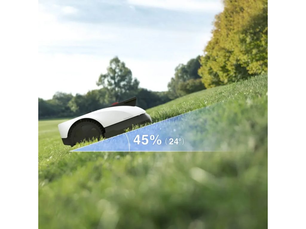 Robotická sekačka ECOVACS GOAT O800 RTK snadno a stabilně zdolává svahy se sklonem až do 45 % (24°). Obratnou manévrovatelnost a zdolávání svahů umožňují zadní terénní kola o průměru 22 cm a přední univerzální kola. Zároveň zajistí průjezd i přes chodníky do výšky 3 cm.