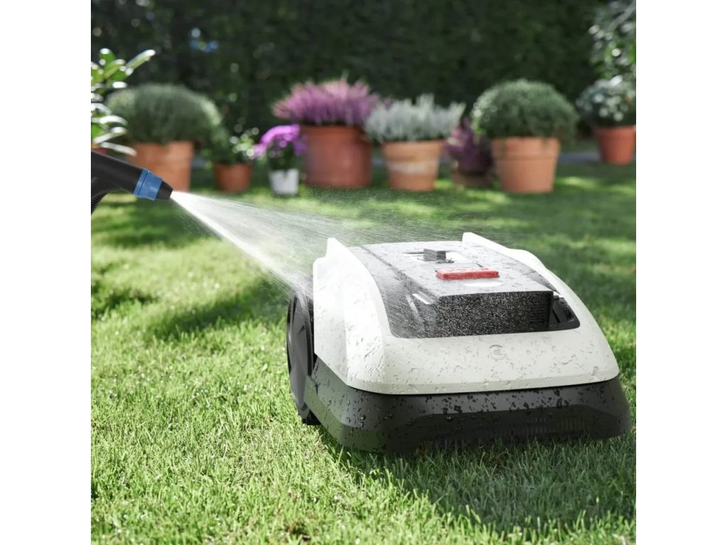 Ani čištění robotické sekačky vám nezabere moc času. Díky vodotěsnosti IPX6 ji stačí převrátit na bok a spodní část a žací kotouč omývat zahradní hadicí. Rovněž omyjete i vnějšek robotické sekačky.