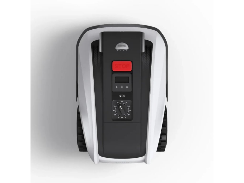 Na vrchní části robotické sekačky se nachází velký grafický displej a ovládací panel, který umožňuje nastavení nejdůležitějších funkcí a spuštění sečení bez nutnosti použití aplikace.