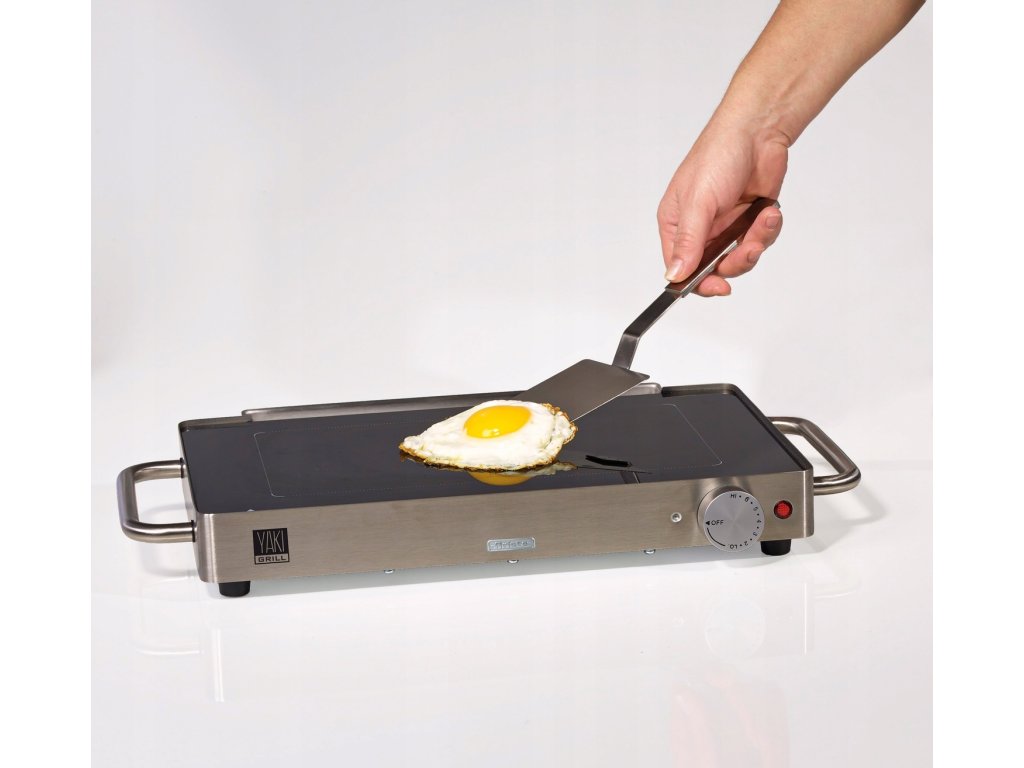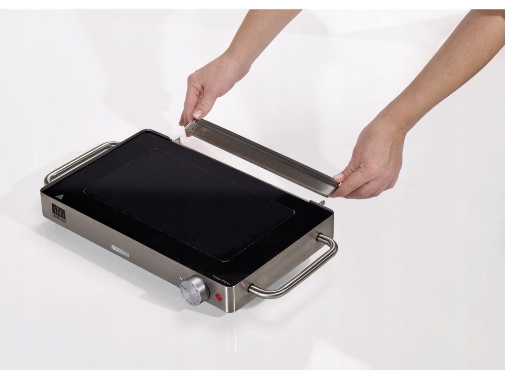 Jedná se o stylový a moderní elektrický gril s keramicko-skleněnou plochou a kovovým tělem.