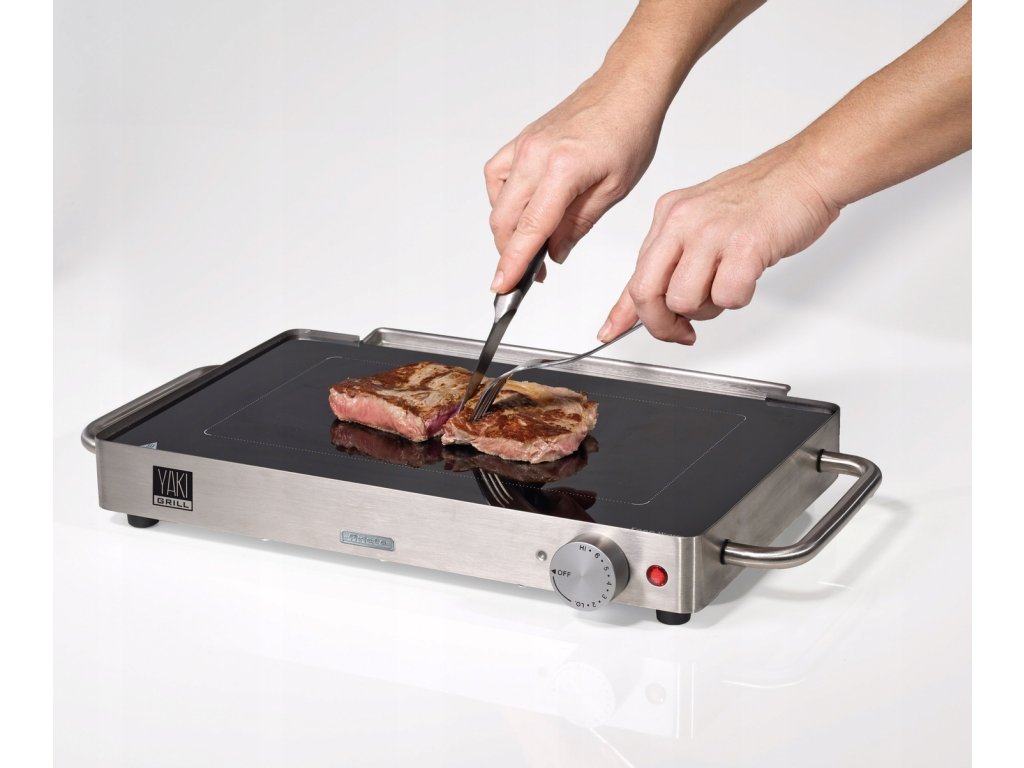Díky keramické/ skleněné grilovací ploše se gril velmi rychle nahřívá, je snadný na čištění a hodí se pro grilování zeleniny, masa, steaků či i vajíček.