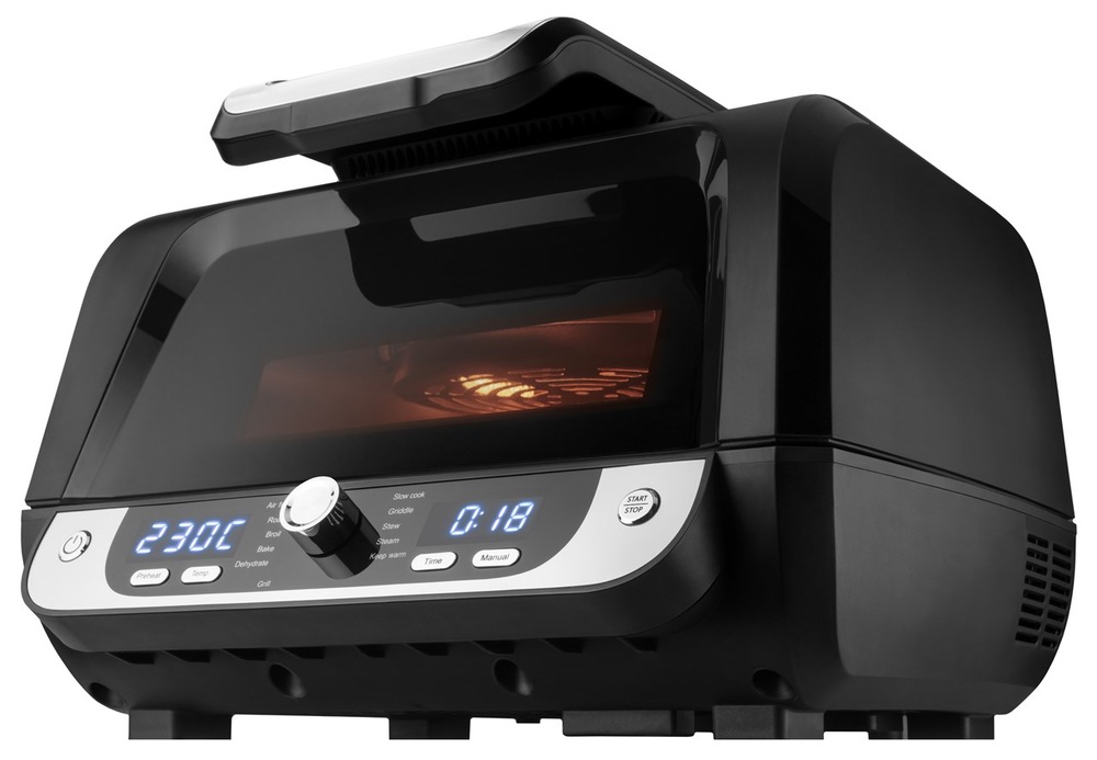 fritéza horkovzdušná • příkon: 1 700 W • LED displej • 12 automatických funkcí • kombinace fritézy a grilu • typ fritování: horký vzduch • regulace teploty • automatické vypnutí • teplotní rozsah: 50–230 °C • nepřilnavý povrch • okénko ve víku • časovač/minutka: ano