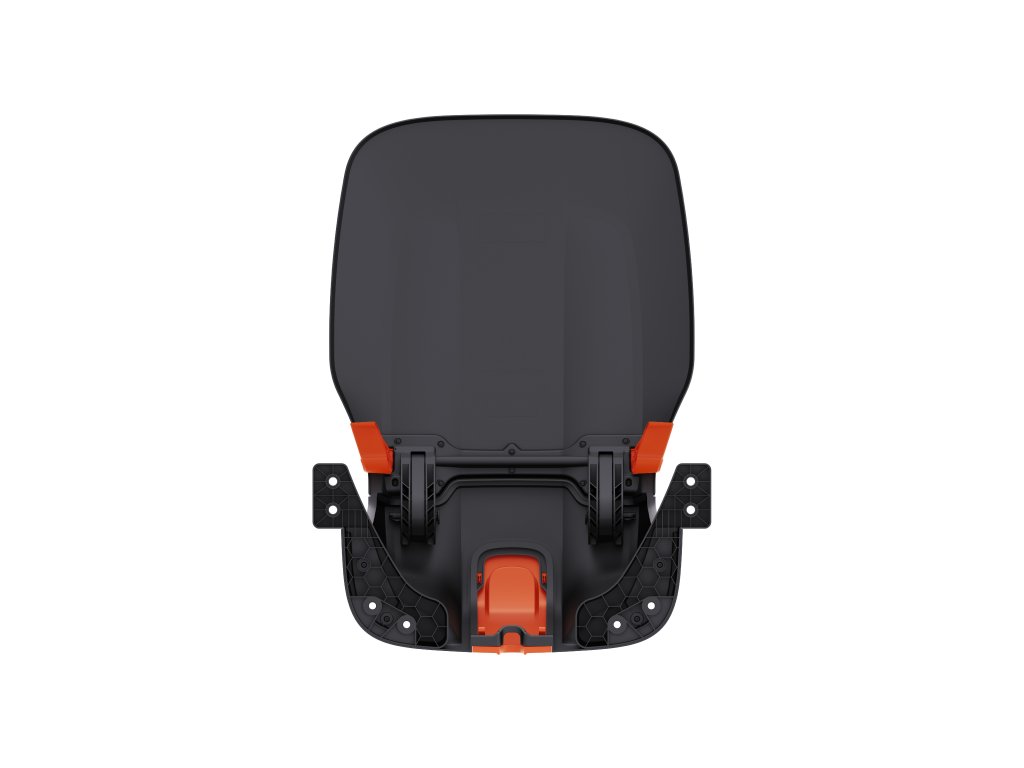 Garáž je vyrobena z vysoce kvalitních materiálů, které odolávají UV záření, dešti a sněhu. Její sklopná vrchní část umožňuje snadný přístup k klávesnici a displeji pro nastavení a kontrolu sekačky. Otvor v zadní části garáže umožňuje snadné připojení kabelů.