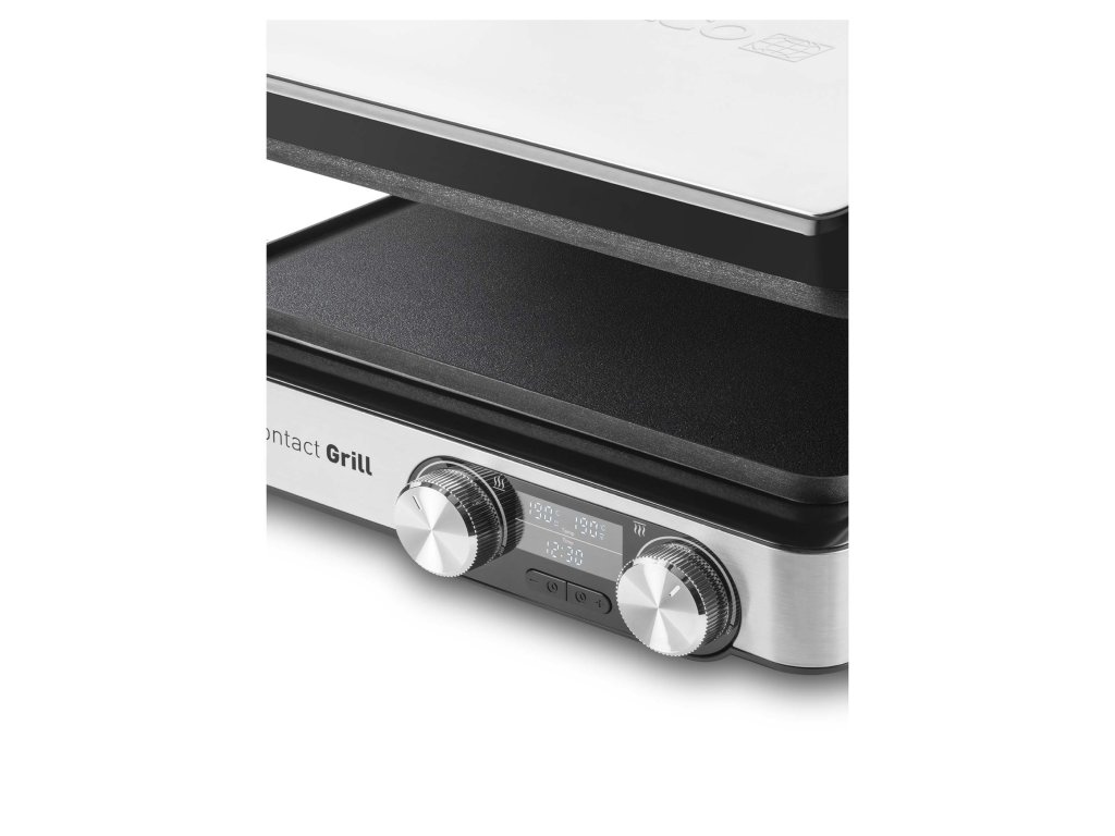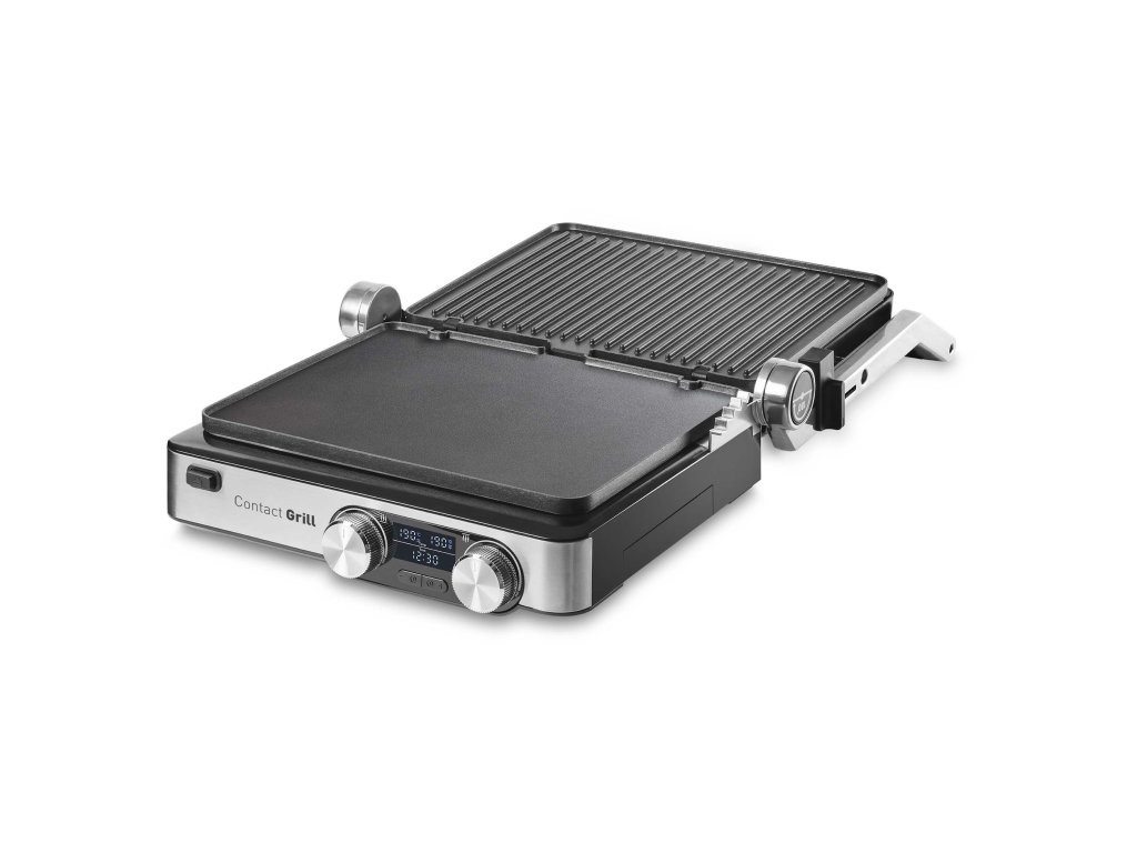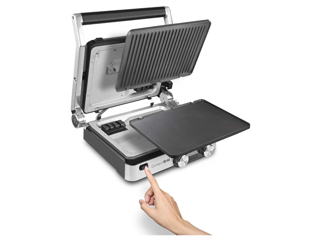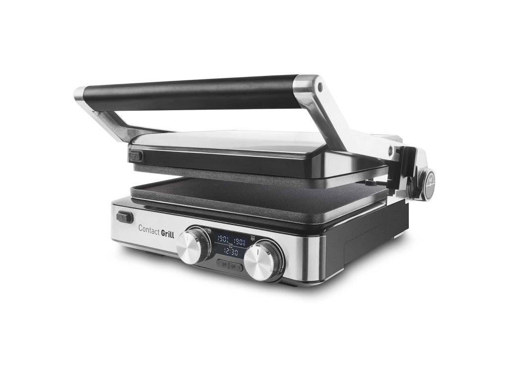 Opravdové grilování po celý rok s grilem Philco PHGR 7000 F. Budete zbožňovat krásné grilované linky na mase a zamilujete se do jednoduchosti celé přípravy i následném úklidu. Díky topnému tělesu přímo na grilovací desce využijete maximum z vytvořeného tepla a budete skutečně grilovat a to i pořádné fláky masa. Tento gril je možné používat buď v poloze kontaktního grilu nebo barbecue při rozložení, kdy získáte větší grilovací plochu. Navíc má každá deska nezávislé ovládání teploty a proto můžete na jedné grilovat a na druhé jen jídlo přihřívat.Na grilu oceníte i jeho vizuální stránku. Gril je vyroben v nerezovém designu a má dominantní ovládací panel s LED digitálním displejem. Mezi další vychytávky grilu patří pevné nastavení výšky horní grilovací desky, díky čemuž nerozmačkáte měkké potraviny, nebo výsuvný odkapávací tácek, který se vysouvá velmi prakticky na boku spotřebiče.