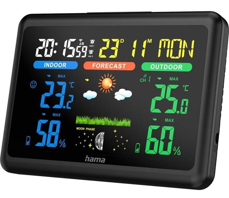 Hama Color, meteostanice, bezdrátový senzor, barevný VA displej, síťový zdroj, baterie