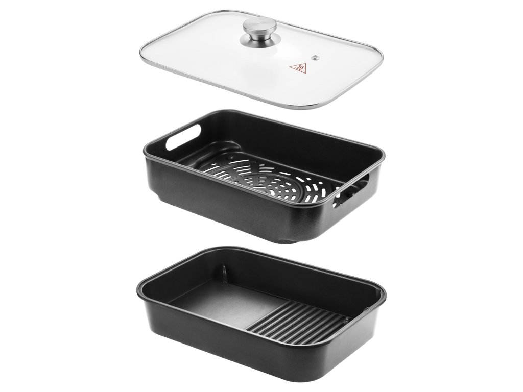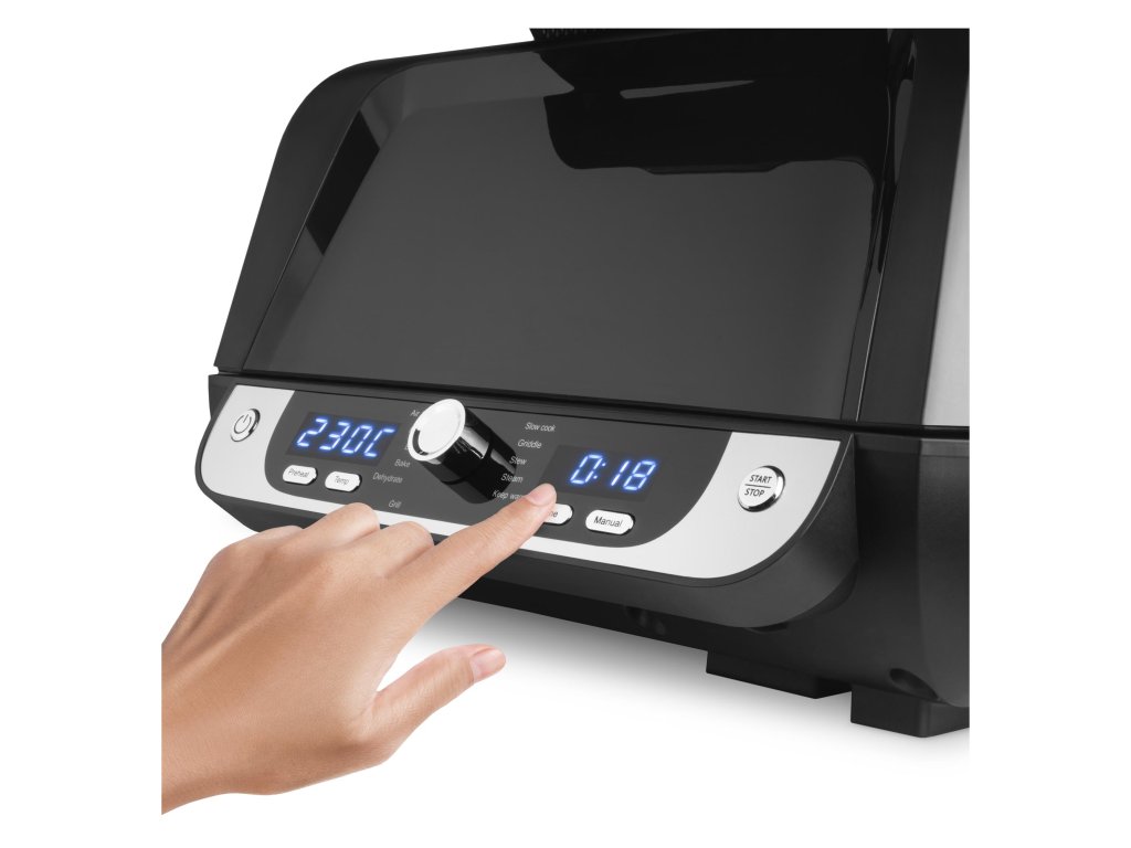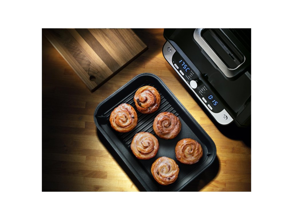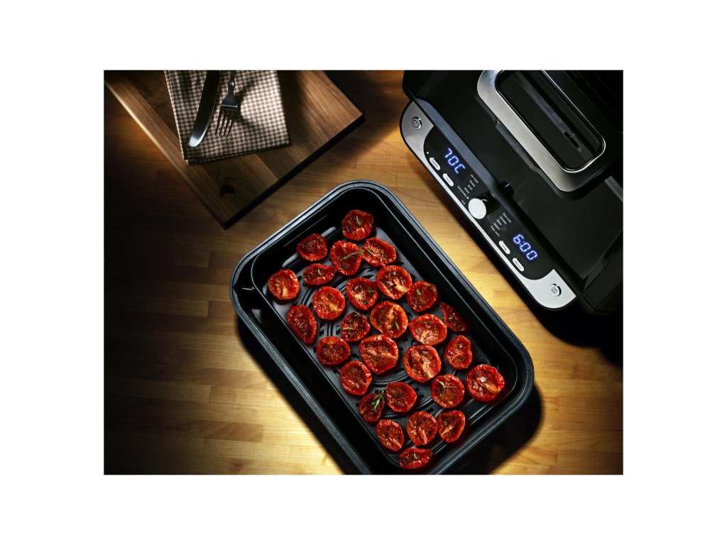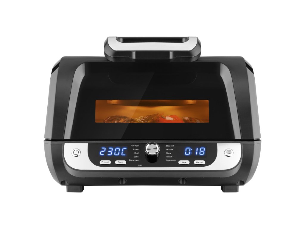 Je vybavena horním konvekčním topným tělesem a spodní topnou deskou s nepřilnavým povrchem, díky vnitřnímu osvětlení a velkému průhledu můžete sledovat krok po kroku průběh přípravy. Po dokončení nastaveného programu či zvolené funkce se fritéza automaticky vypne. Po vychladnutí všechny vyjímatelné části snadno umyjete. Doba přípravy zvoleného pokrmu je kratší s výrazně menší spotřebou energie než při rozehřátí trouby.