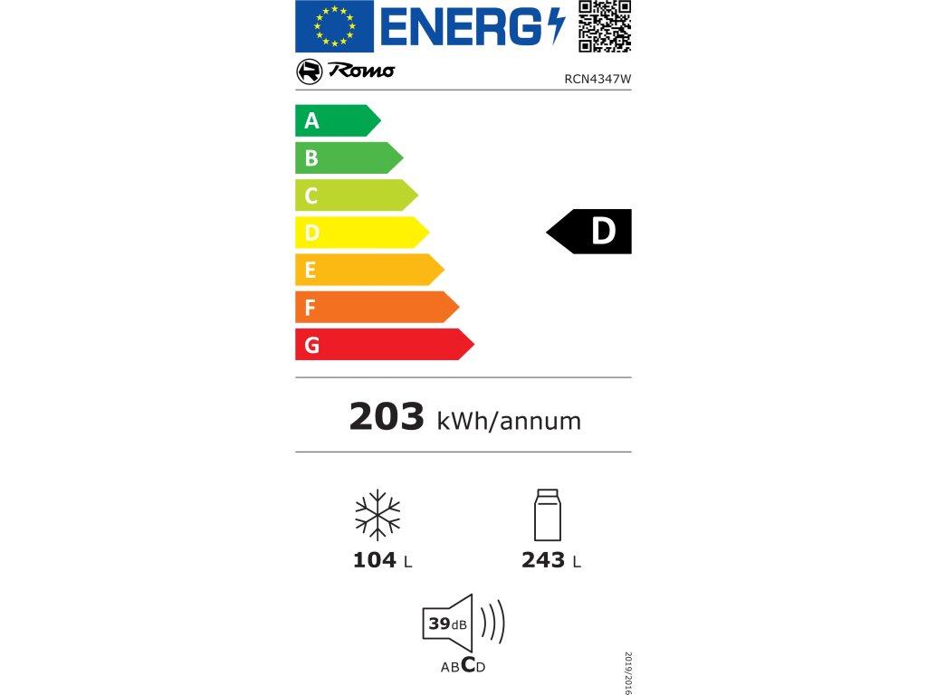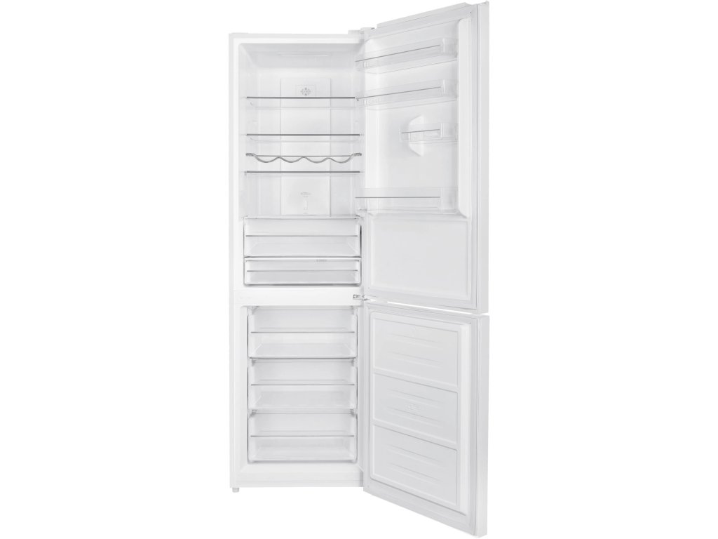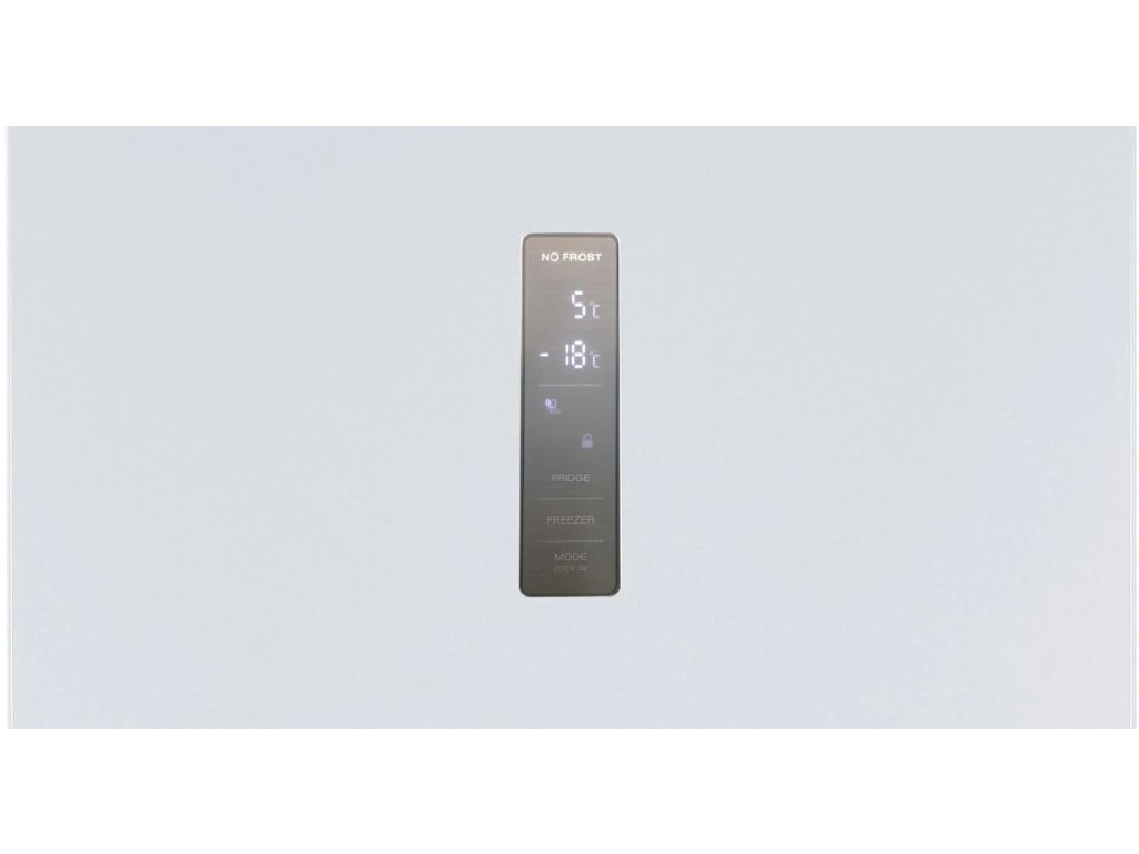 Kombinovaná Total No Frost chladnička s mrazákem dole v elegantním bílém provedení. Tento model se řadí do energetické třídy D a klimatické třídy SN-T. S hlučností pouze 39 dB je velmi tichým přístrojem. Chladnička nabízí celkový objem 347 litrů a disponuje elektronickým řízením teploty s ovládáním a LCD displejem na dveřích. Dále je vybavena zvukovou signalizací otevřených dveří, funkcí Super Mrazení, funkcí Dovolená a Eco, Dětským zámkem displeje a možností změny směru otevírání dveří. V případě výpadku proudu chladnička vydrží až 11 hodin bez napájení. Roční spotřeba energie činí 203 kWh. Rozměry jsou 193,5 x 60 x 68,5 cm a hmotnost 67 kg.