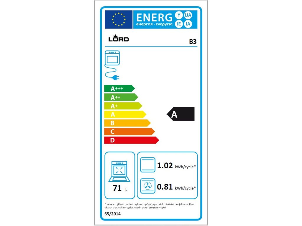 Bonusem LORD B3 je bezesporu také velmi nízká spotřeba – pouhých 0,81 kWh při horkovzdušném ohřevu a 1,02 kWh při tradičním ohřevu. Jistě dále oceníte energetickou třídu A nebo dlouhý přívodní kabel o délce 120 cm.