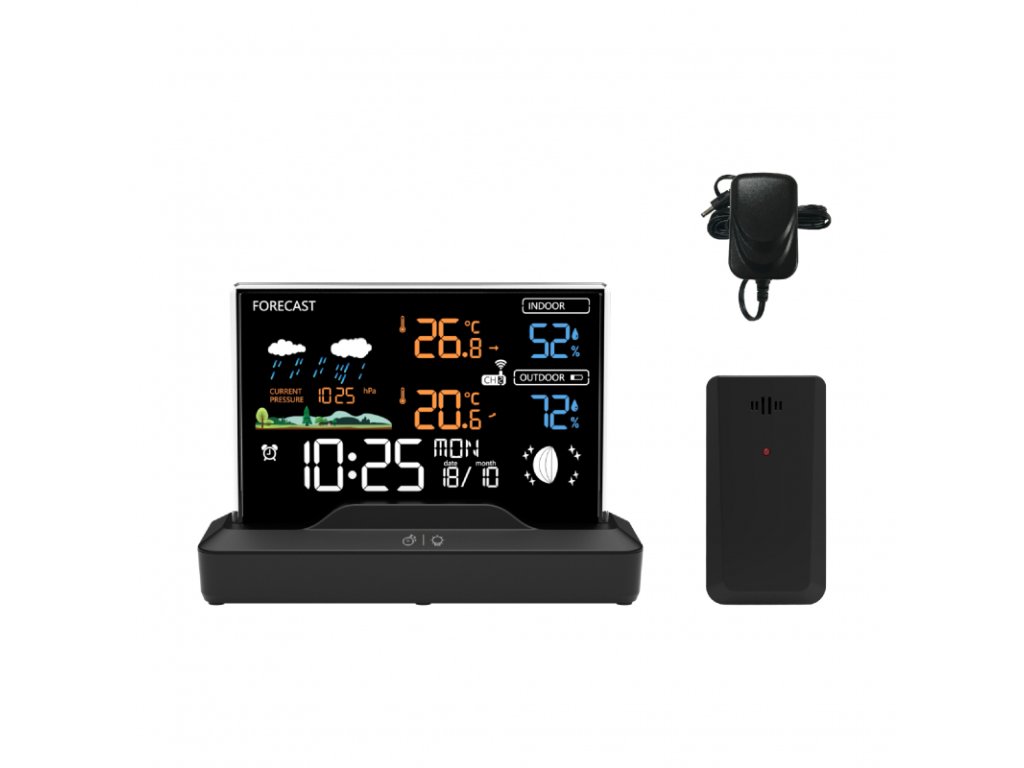 Díky této stanici vím, jaké počasí bylo, je a bude. Než jdete ven, tak stačí kouknout a více, co vás venku čeká. Doporučuji. Jedná se o bezdrátové měření, které vám zaručí větší přehled o počasí jak venku, tak i u vás doma. Meteostanice měří vlhkost, vnitřní i vnější teploty a dále uchovává záznamy maximální i minimální vlhkosti a teploty. Také zde naleznete předpověď počasí a automatické nastavení času a data přímo na displeji a další funkce.
