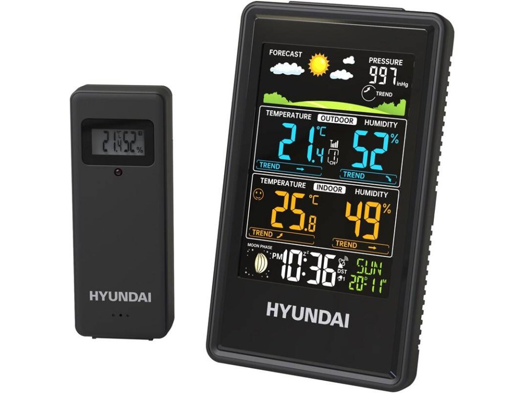 Meteostanice Hyundai WS 2350 nabízí rychlé a přesné informace o aktuálním počasí, teplotě a čase. Disponuje všemi důležitými funkcemi pro sledování počasí – měří teplotu, vlhkost, barometrický tlak a zobrazuje předpověď prostřednictvím animací. O přesný čas se stará automatická synchronizace pomocí rádiového signálu DCF 77. Mezi praktické funkce patří také budík, kalendář a zobrazení fází Měsíce. Výhodou je možnost připojení až tří externích čidel, což umožňuje sledovat podmínky na různých místech kolem domu.