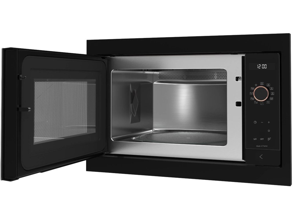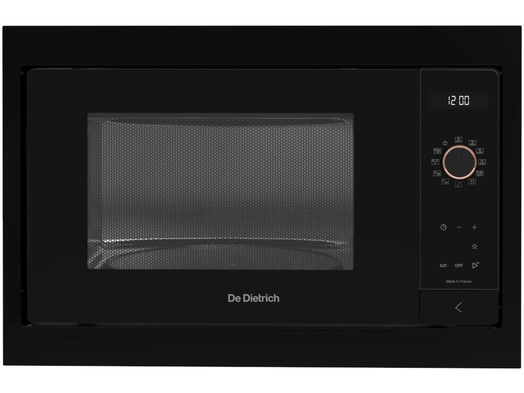 Mikrovlnná trouba představuje v dnešní době téměř nepostradatelného pomocníka, který zajímavě obohatí vaši kuchyni a zároveň vám nabídne i mnoho moderních funkcí. Vestavnou mikrovlnnou troubu De Dietrich oceníte hlavně pro její efektivnost, víceúčelovost a hospodárnost. Nejenže vám ušetří místo v kuchyni, ale také ji svým designem výborně doplní. Celkový objem činí 26 l a má otočný talíř s průměrem 30 cm. Hodnota výkonu napovídá, za jak dlouho bude jídlo ohřáté. Tento typ podává maximální výkon 900 W. Regulace mikrovlnky je možná pomocí 5 úrovní výkonu. Mikrovlnná trouba De Dietrich disponuje klasickým manuálním ovládáním. Požadovaný program i jeho délku nastavíte pomocí otočného kolečka. Mikrovlnná trouba De Dietrich má k dispozici elektronické ovládání. V digitální formě se zobrazují všechny funkce a hodnoty. Vnější rozměry mikrovlnky jsou 39 × 59,2 × 48 cm (V׊×H).