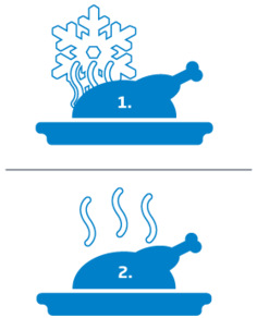 Praktická funkce Vaření spočívá v rozmrazení a ohřevu jídla bez přerušování a nastavování. Stačí vložit zmražený pokrm, spustit funkci Vaření a mikrovlnka jej šetrně rozmrazí a ohřeje.