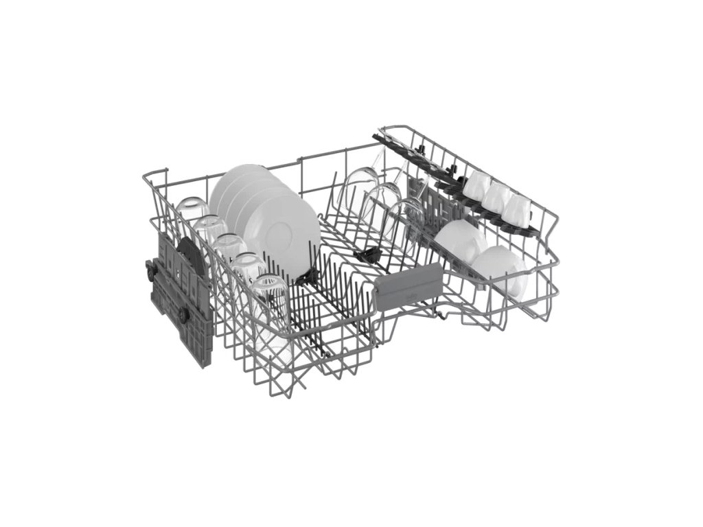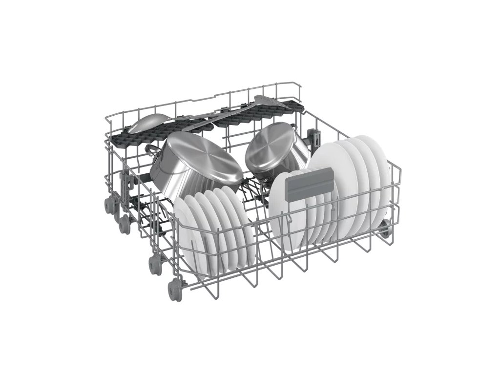 Příborová přihrádka poskytuje dostatek prostoru pro rozložení příborů a drobného nádobí a je vybavená i vlastním sprchováním. Díky příhrádce se tak ve spodním koši uvolní další místo pro velké kusy nádobí.