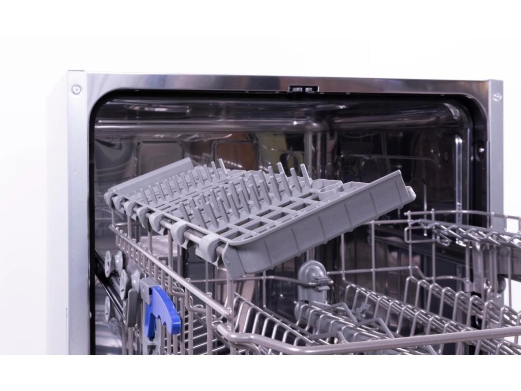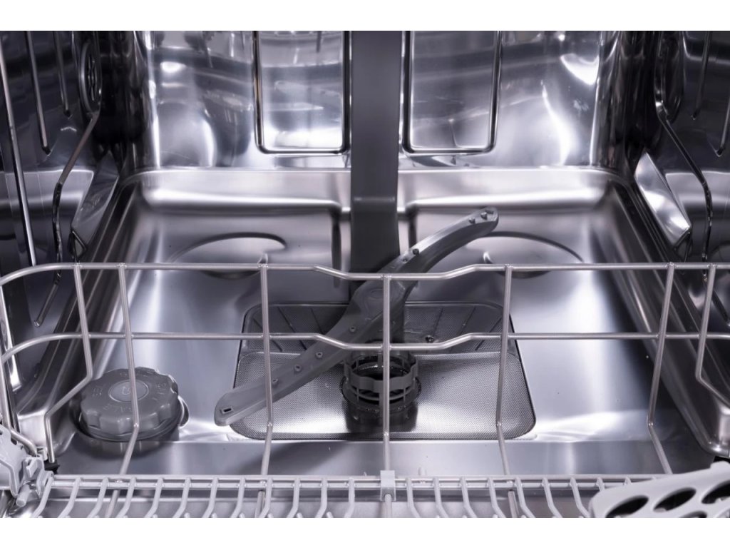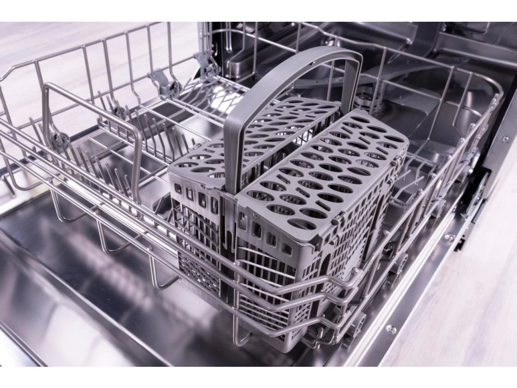 Vestavná myčka nádobí s černým panelem; šířka 60 cm; kapacita 14 sad nádobí; nová en. třída D; odložený start až o 12 h; indikace programů a funkcí pračky pomocí LED; 6 programů a 4 teploty; výškově nastavitelný horní koš; funkce poloviční náplň; kontrolky nízké hladiny soli a leštidla; nerezový filtr a vnitřek; konvekční sušení + automatické otevírání dveří AutoDoor; hlučnost 44 dB(A); ochrana proti přetečení a vyplavení, nastavitelné nožičky až o 5 cm