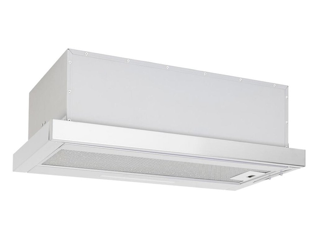 | Vestavná digestoř výsuvná, jediná na trhu s odtahem dozadu nebo nahoru (oba 120 mm), šíře 60 cm, bílá s nerez lištou, max. výkon 338 m?/h (15 Pa), hlučnost Lw 56 – 71 dB(A), 3 rychlosti, odsávací jednotky mají individuálně vyvažovanou turbínu, motory jsou opatřené vratnými tepelnými pojistkami (při přetížení motoru vypne, po jeho vychladnutí opět sepne), mechanické posuvné ovládání, kovové sendvičové tukové filtry, které lze mýt v myčce, možnost práce v odtahovém i recirkulačním režimu, Výbava | úsporné LED osvětlení 1 × 2,8 W (LED pásek), zdarma zpětná klapka |