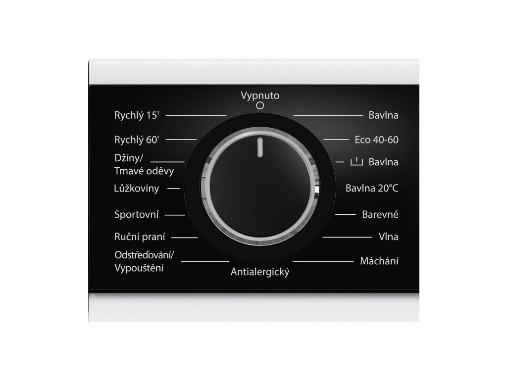 - 8 pracích teplot: 20 °C až 90 °C (nastavení po 10 °C) a bez ohřevu
