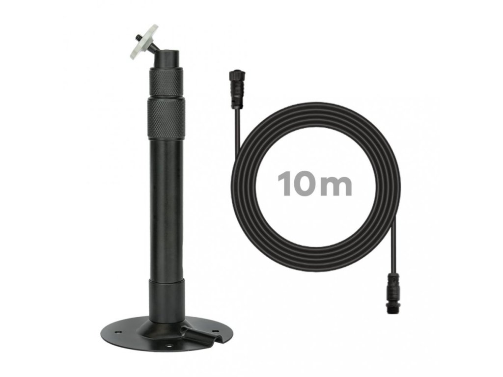 Sada obsahuje základnu, teleskopický sloupek antény, hmoždinky, samořezné vruty a 10 m prodlužovací kabel.