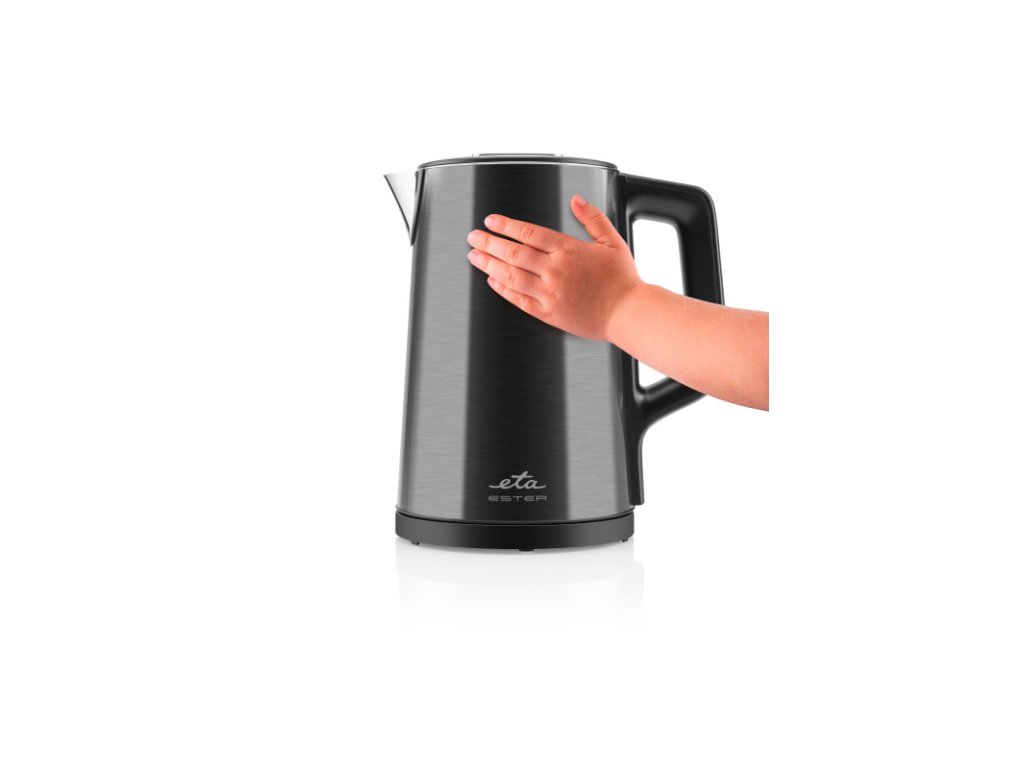 Dvouplášťové provedení rychlovarné konvice ETA Ester zabrání nechtěnému popálení. Její vnější vrstva z kvalitního nerezu totiž zůstává stále příjemná na dotek, a to i přesto, že to uvnitř pořádně vře. Vnitřní část konvice je vyrobena z nerezu, který je odolný a hygienický.