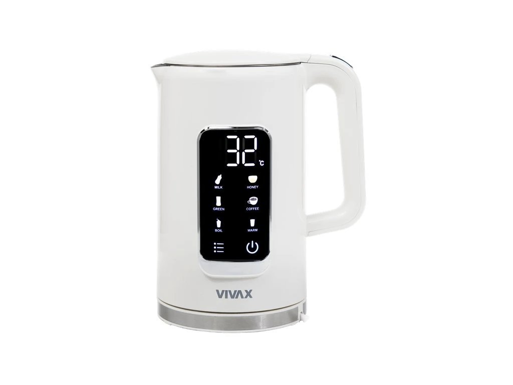 Konvice VIVAX WH-180DW je nová inovativní konvice s objemem 1,7 litru a výkonem ohřevu 2200 W a pomocí digitálního ovládání a velké obrazovky zajistí rychlý a efektivní ohřev vody na přesně nastavenou teplotu. .