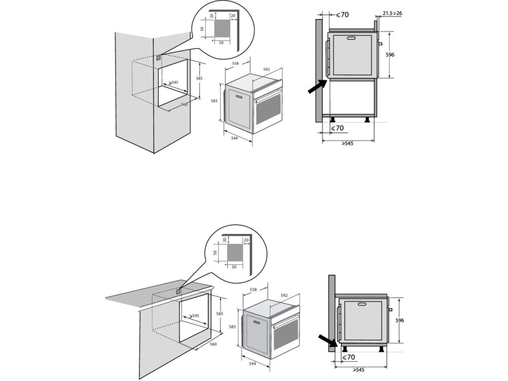Příslušenství zahrnuje 6úrovňové chromované vodící rošty, teleskopický výsuv plechu, bezpečnostní rošt a dva pečicí plechy. Rozměry trouby jsou ideální pro snadnou instalaci do každé kuchyně: 59,6 x 59,2 x 54,4 cm. Tato trouba je dokonalou kombinací funkčnosti, stylu a inovace pro vaši kuchyni.