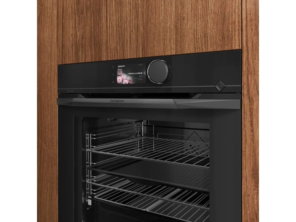 Multifunkční pyrolytická trouba s možností ovládání přes aplikaci De Dietrich Smart Control II připojené prostřednictvím Wi-Fi v barevném provedení Infinite Black ; Intuitivní ovládání s velkým 4,3" TFT barevným displejem s výběrem z 21 světových jazyků a voličem programů; Vnitřní objem trouby 73 l; Energetická třída A+; Soft Close - dvířka se šetrným automatickým dovíráním; Cold door - chladná dvířka se 4 skly a odnímatelným vnitřním sklem; 150 chytrých automatických programů (AI smart navigation) včetně horkovzdušného pečení, kombinovaného pečení, udržování v teple atd; Můžete si vybrat z 38 světových receptů; 28 programů AI Sensor; 14 programů na francouzské dezerty; Nízkoteplotní pečení pro 17 druhů pokrmů; Kulinářský průvodce pečením až pro 53 různých druhů pokrmů; Variabilní gril se 4 stupni výkonu; Automatické čištění Pyrocontrol - Pyro Express, Pyro Auto, Pyro 2H; Příslušenství: Boční rošty, 100% teleskopický výsuv, 2 plné a 2 poloviční rošty, mělký a hluboký plech, 1 perforovaný plech pro Sušení a Air Fry; Rozměry pro vestavbu (VxŠxH): 58,5 x 56 x 55 cm; Rozměry (VxŠxH): 59,2 x 59,2 x 60,9 cm.