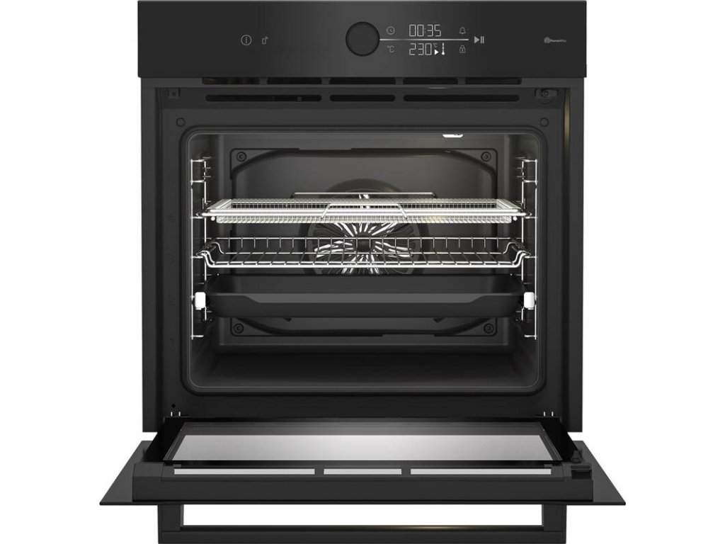 K dispozici je množství funkcí, včetně AeroPerfect pro rovnoměrné pečení nebo AirFry vedoucí k přípravě pokrmů s minimálním množstvím oleje. Prostřednictvím aplikace HomeWhiz získáte perfektní kontrolu i možnost nastavování na dálku. Hlavu si nemusíte lámat ani s údržbou, jelikož se o ni postará pyrolytické čištění. Trouba obsahuje tlumené zavírání dvířek opatřených 4 skly, praktické vnitřní osvětlení a teleskopické výsuvy. Součástí balení je rovněž rošt, standardní plech, AirFry perforovaný plech a teplotní sonda MeatProbe.