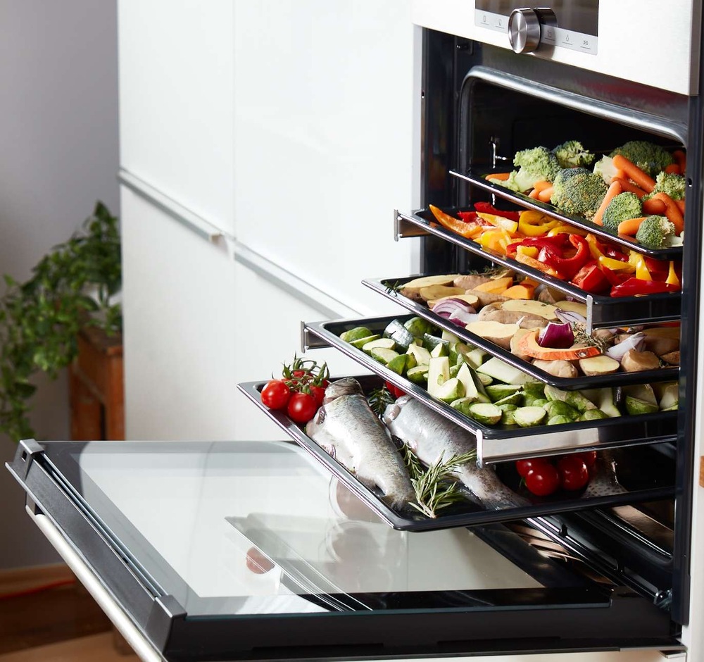 Aniž byste to tušili, nebo museli ručně spouštět funkci čištění, trouba se průběžně udržuje čistá sama. Jakmile totiž dosáhne teploty minimálně 85 °C, povrch z katalytického smaltu absorbuje mastnotu. Při větším znečištění zase využijete funkce EcoClean, která vyčistí troubu pomocí páry.