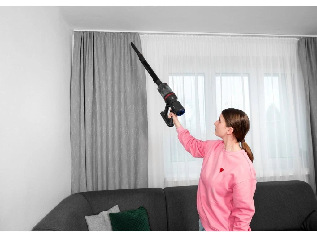 Tyčový vysavač Concept VP6260 se dokonale přizpůsobí výšce a potřebám každého uživatele. Je vybaven teleskopickou trubkou, která umožňuje nastavit délku od 95 do 117,5 cm. Díky ohebnému kloubu lze vysavač prodloužit až na 135 cm, což vám zajistí lepší dosah pro pohodlný úklid pod stropy nebo v těžko přístupných místech mezi nábytkem.