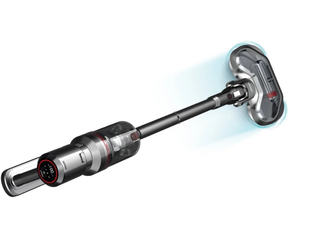 Vysavač nabízí tři režimy výkonu, které snadno přizpůsobíte různým typům povrchů. Nízký výkon se hodí pro tvrdé podlahy s menším množstvím nečistot, zatímco vysoký výkon si poradí s koberci a větším znečištěním. Digitální displej zobrazuje aktuálně zvolený režim i procentuální stav baterie. Praktické indikátory vás navíc upozorní na ucpaný filtr nebo zaseknutý kartáč, čímž zajišťují plynulý chod a snadnou údržbu.