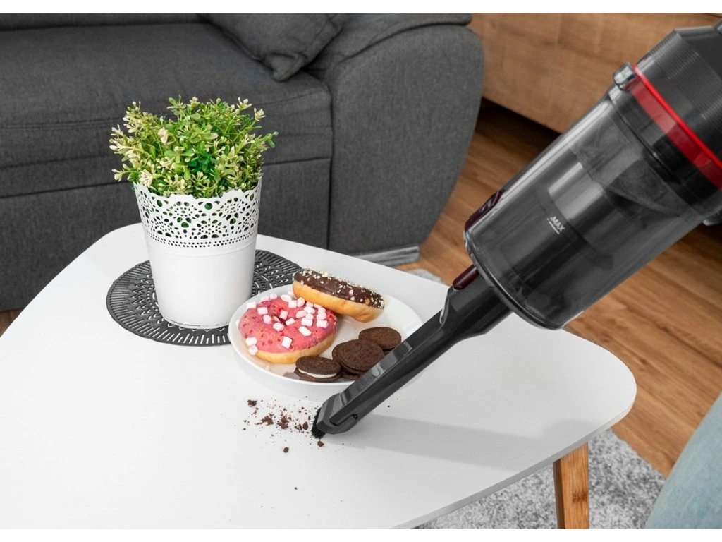 Tyčový aku vysavač s Li-Ion baterií o kapacitě 2200 mAh vám umožní pohodlný úklid bez omezení kabelem. Na jedno nabití zvládne až 50 minut provozu při nízkém výkonu, což je ideální pro běžné vysávání tvrdých podlah. Plné nabití trvá pouhé 3 až 4 hodiny. Díky vyjímatelné baterii nemusíte v případě potřeby posílat celý spotřebič do servisu - stačí ji snadno vyměnit za novou, což zvyšuje životnost vysavače a usnadňuje jeho údržbu.