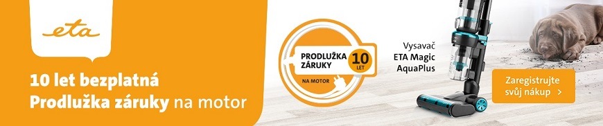 Na motor tyčového vysavače ETA Magic Aqua Plus 7236 90000 si můžete prodloužit záruku zdarma až na 10 let. Stačí se zaregistrovat na stránkách značky ETA.